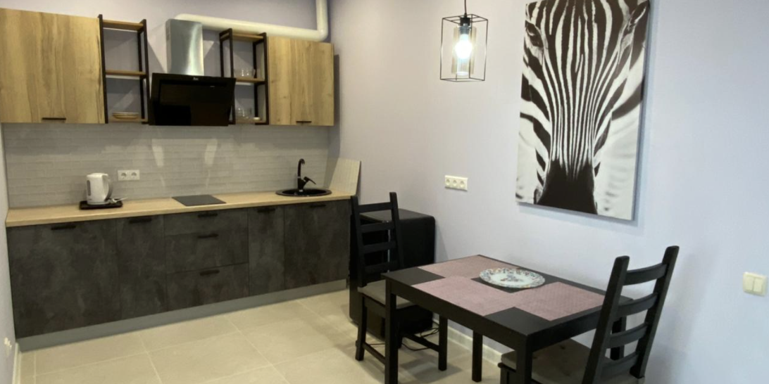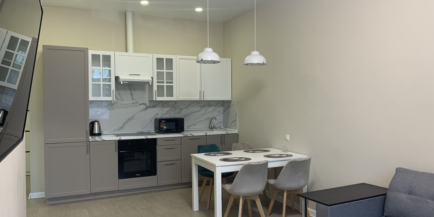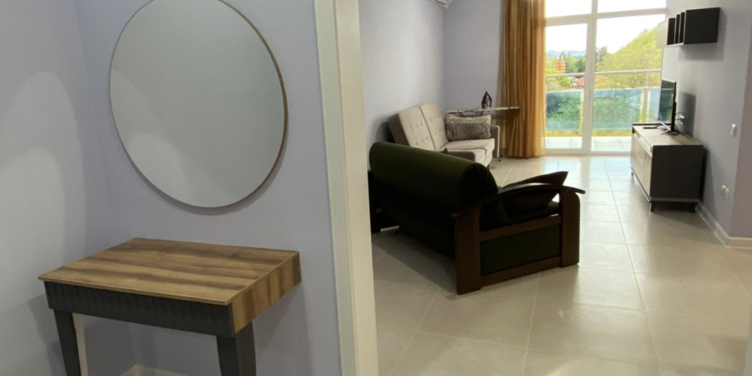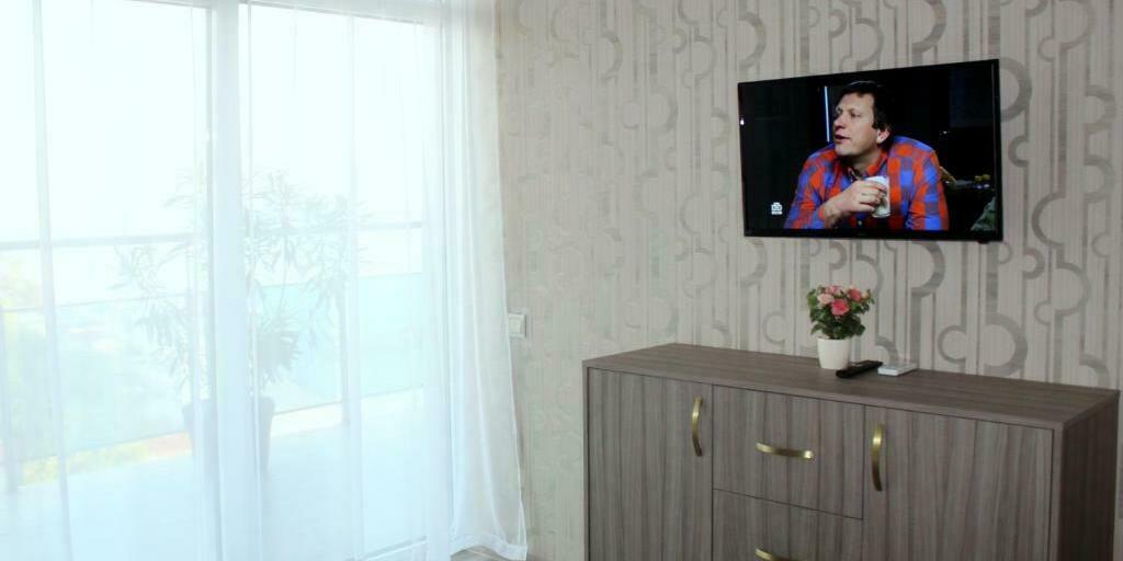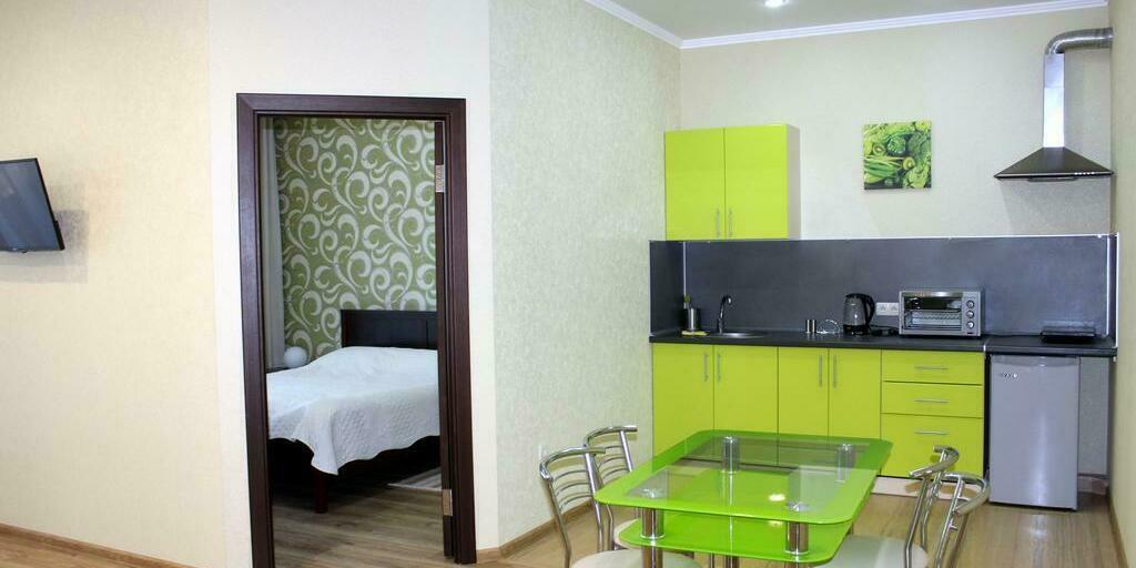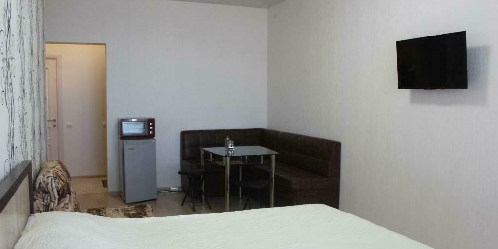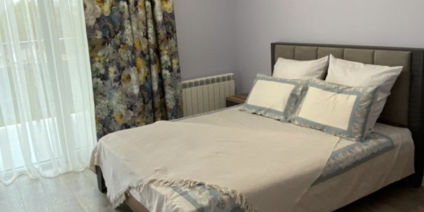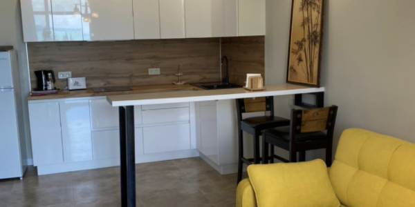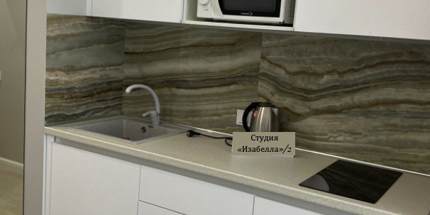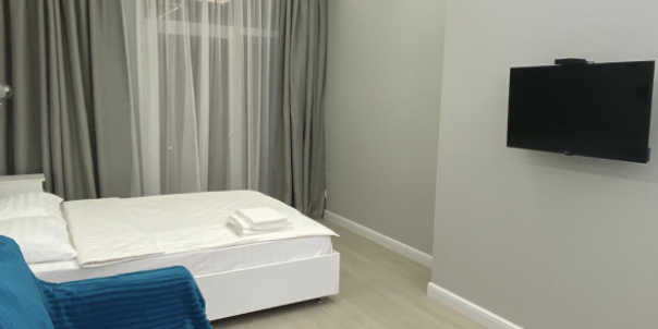 Апартаменты  представляют собой однокомнутную студию с кухней и обеденной зоной, двусапльной кроватью и раскладным диваном.  Имеют балкон с видом на море, поселок и окружающие горы с мебелью для отдыха. Находятся на 7 этаже. Максимальная вместимость 3 человека.