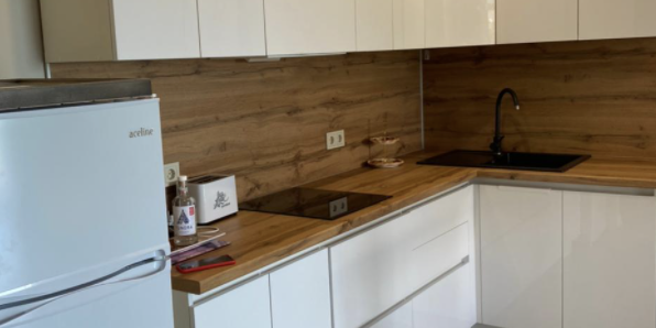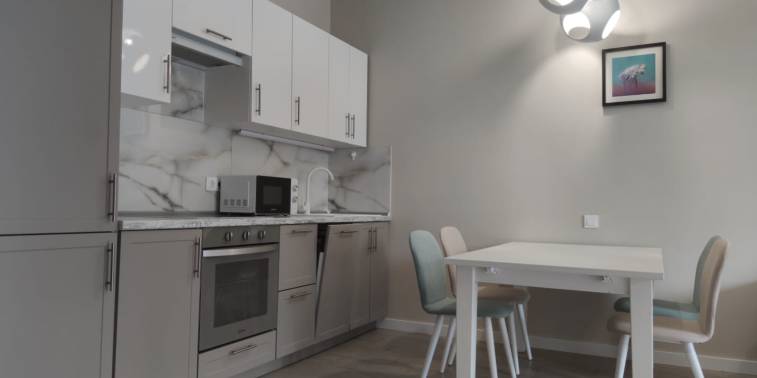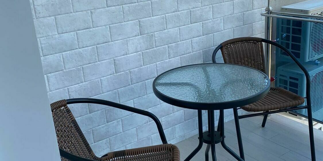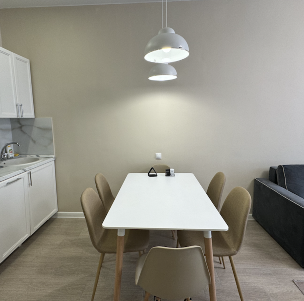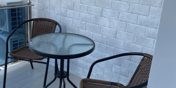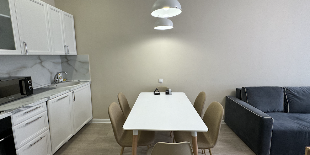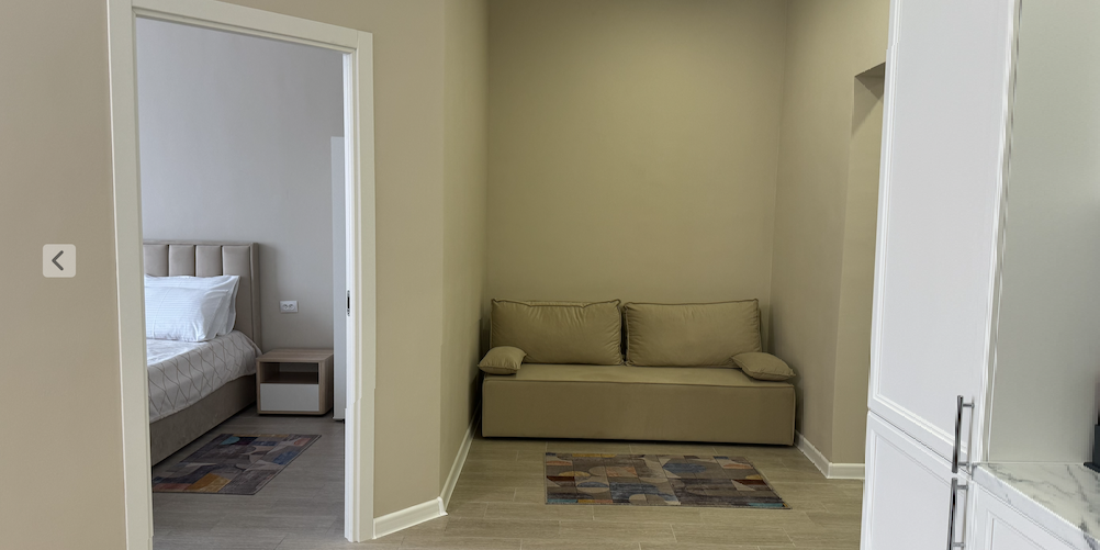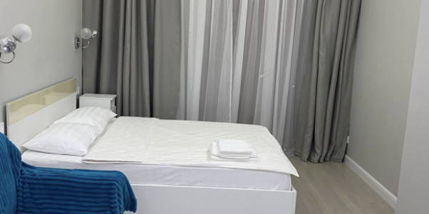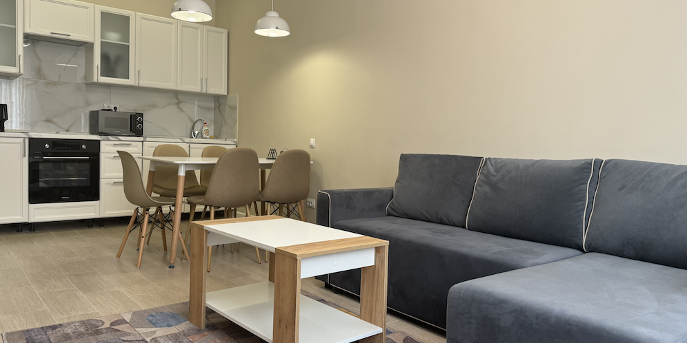 Апартаменты  представляют собой однокомнутную студию с кухней и обеденной зоной, двусапльной кроватью и раскладным диваном.  Имеют балкон с видом на море, поселок и окружающие горы с мебелью для отдыха. Находятся на 7 этаже. Максимальная вместимость 3 человека.