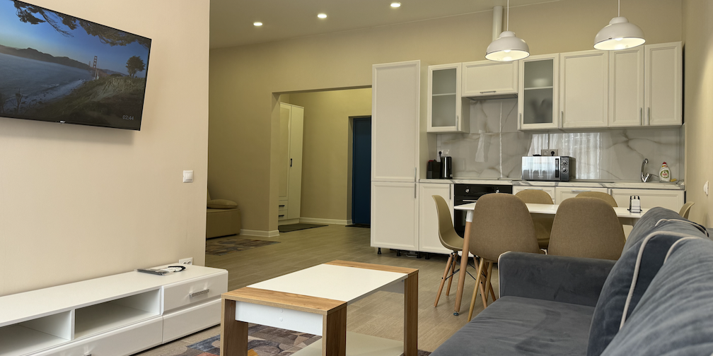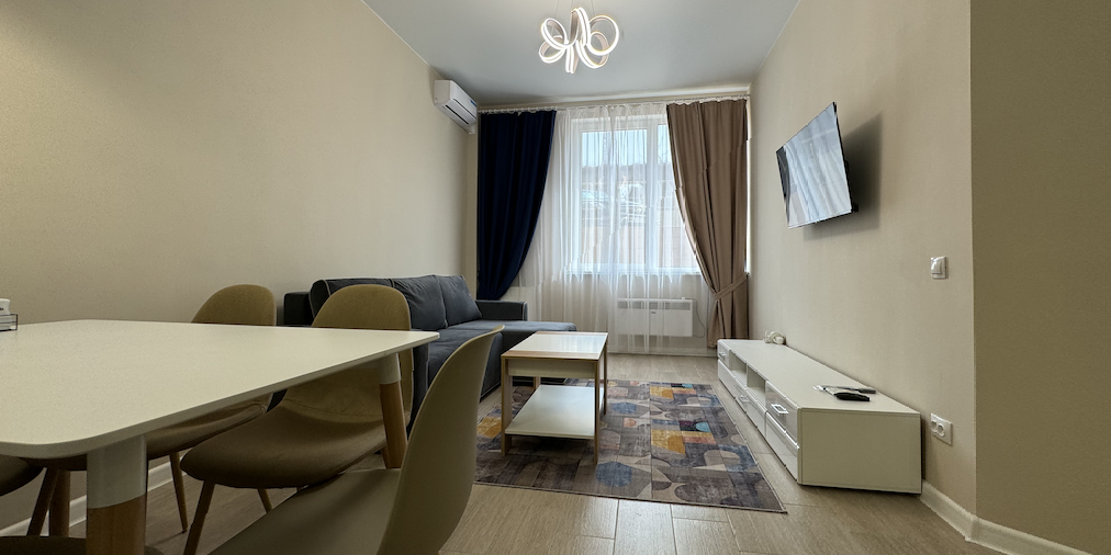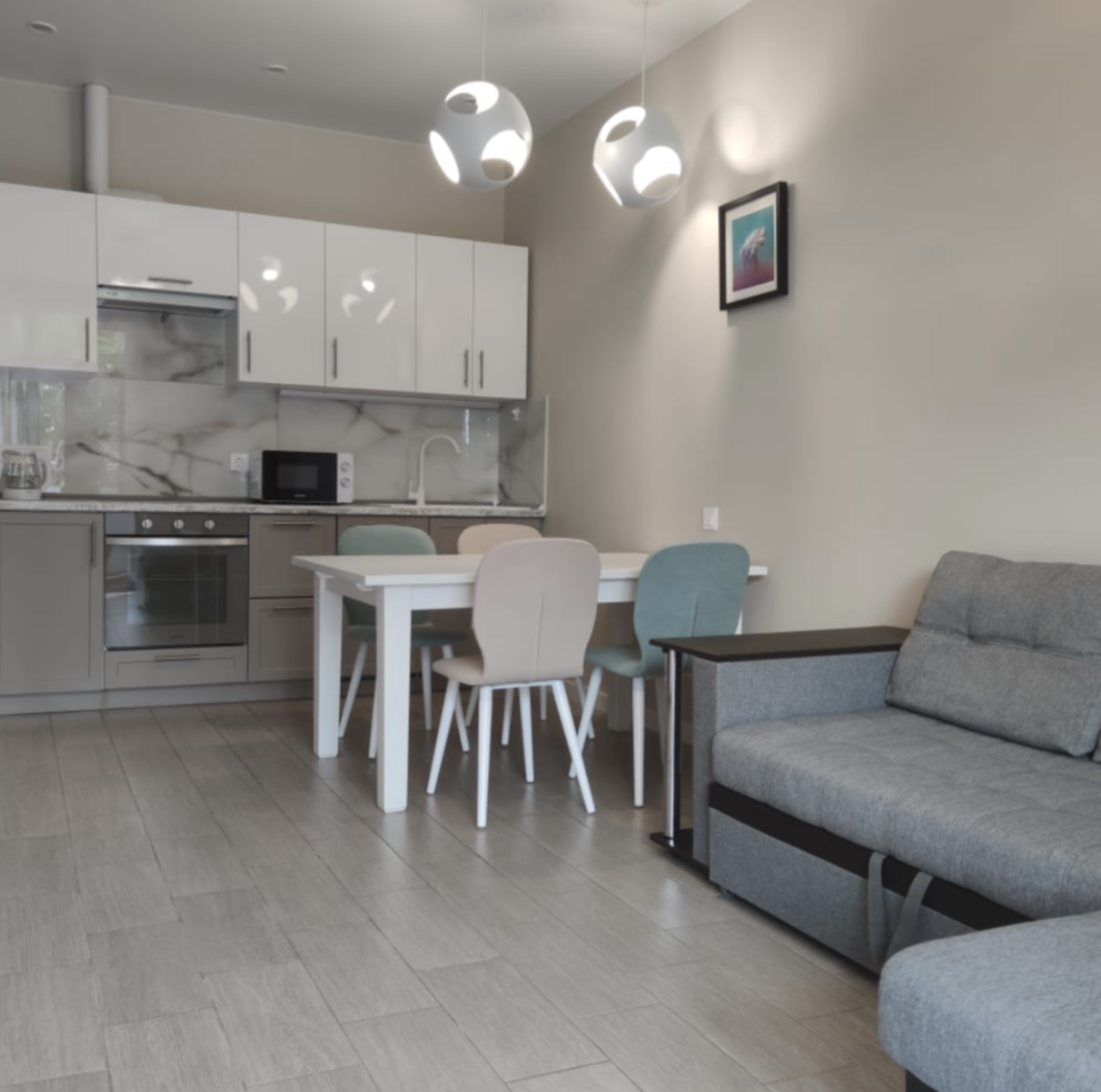 Живите в уютных, светлых апартаменты в элитном доме, с новым дизайнерским ремонтом, расположенные в 5 минутах ходьбы от лучшего пляжав Лазаревской "Багратион". Инфраструктура: в самом доме находится магазин Пятерочка, напротив много лавок с овощами, фруктами, сувенирами, рестораны и кафе в нескольких минутах ходьбы. Бассейн и мангальная зона  на территории гостиницы "Витория" (ул. Одоевского, 23) для гостей ЖК входит в стоимость проживания.