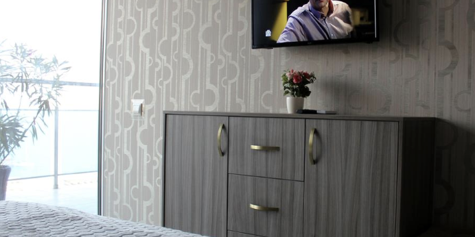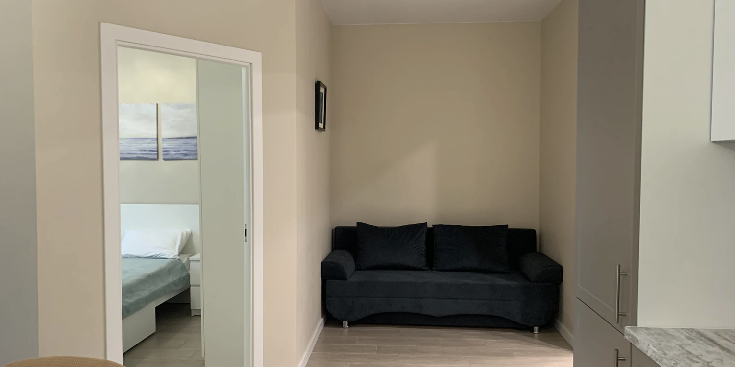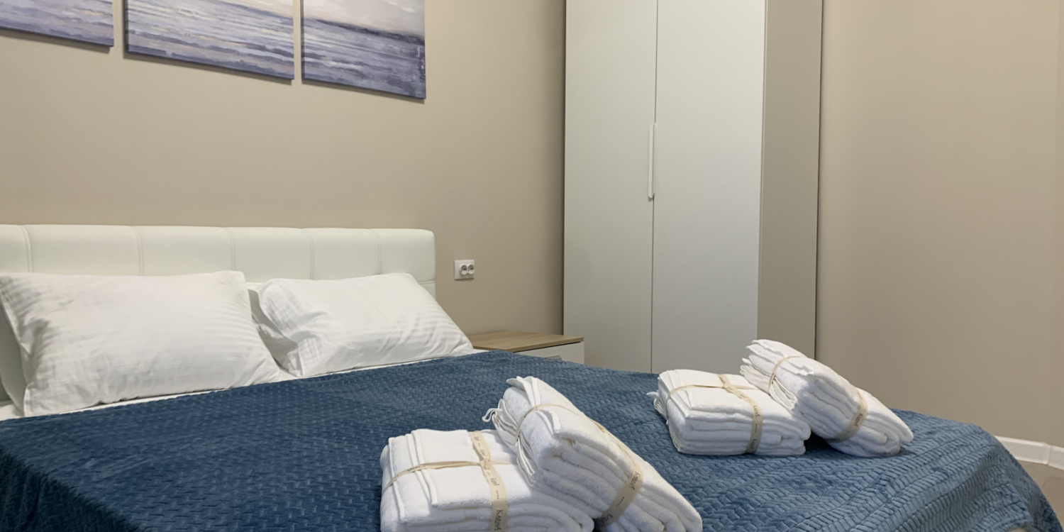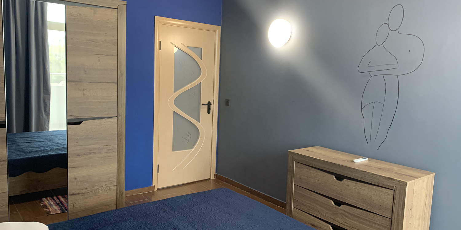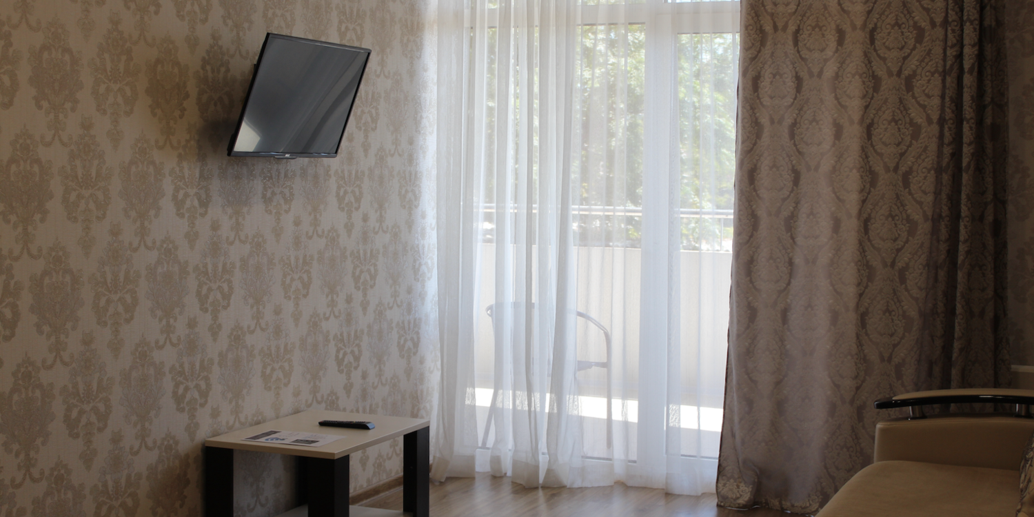 Апартаменты с гостиной оборудованной раскладным диваном, обеденной и кухонной зоной, в спальне двуспальная кровать комод и шкаф. Апартаменты имеют балкон с боковым видом на море. Апартаменты данного типа подходят для семьи с двумя детьми. Находятся на втором этаже. Максимальная вместимость 4 человека.