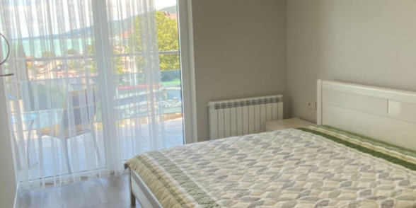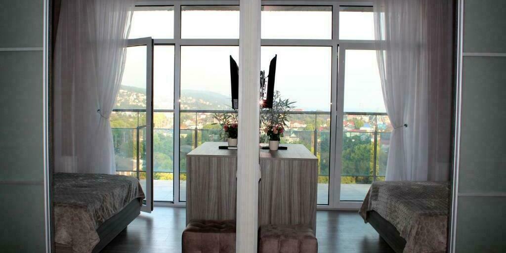 Просторные двухкомнатные апартамены. Спальня с большой  двуспальной кроватью и раскладным диваном. Гостиная с большим раскладным диваном и креслом кроватью. Апартаменты оборудованы полноценной кухней  и обеденной зоной. Имеют террасу с обзорным видом на море, горы и поселок. Расположены на 7 этаже. Максимальная вместимость 7 чел.