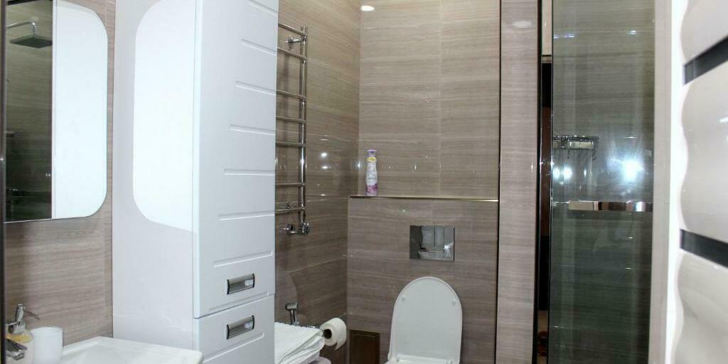 Апартаменты с двумя спальнями, включают гостиную с обеденной и кухонной зоной, 2 спальни и ванную комнату. В гостиной: диван, обеденный стол,  журнальный столик. В каждой спальне двуспальная кровать. Апартаменты имею  террасу с обзорным видом на море, горы и поселок. Расположены на 13 этаже. Максимальная вместимость 6 чел.
